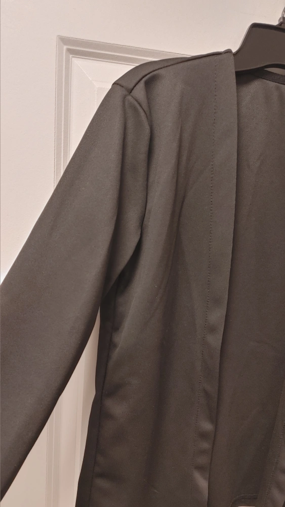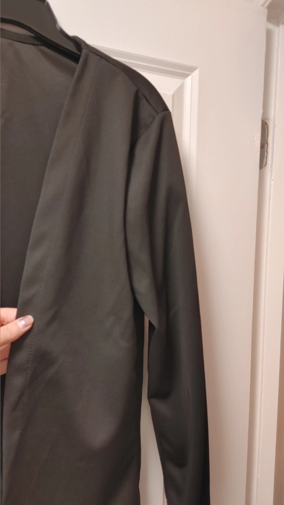 Selling a black open-front blazer. It's in great condition and would be a nice addition to your wardrobe!