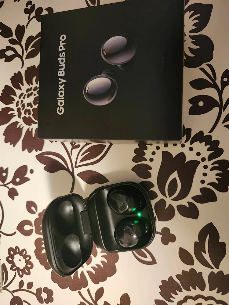 Selling a pair of Samsung Galaxy Buds Pro in black. Comes with the original box and charging case. They are in great condition and ready for a new owner! Cable not included. USB type c needed.