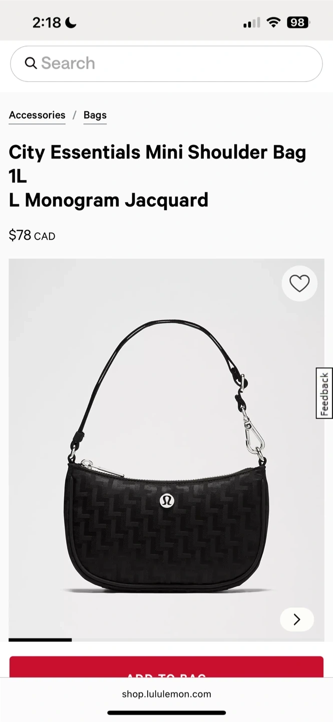 Selling a brand new Lululemon City Essentials Mini Shoulder Bag.