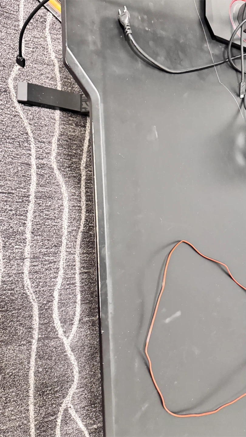 Selling a gaming desk in black. It's in used condition, with some signs of wear. Perfect for setting up your gaming rig!