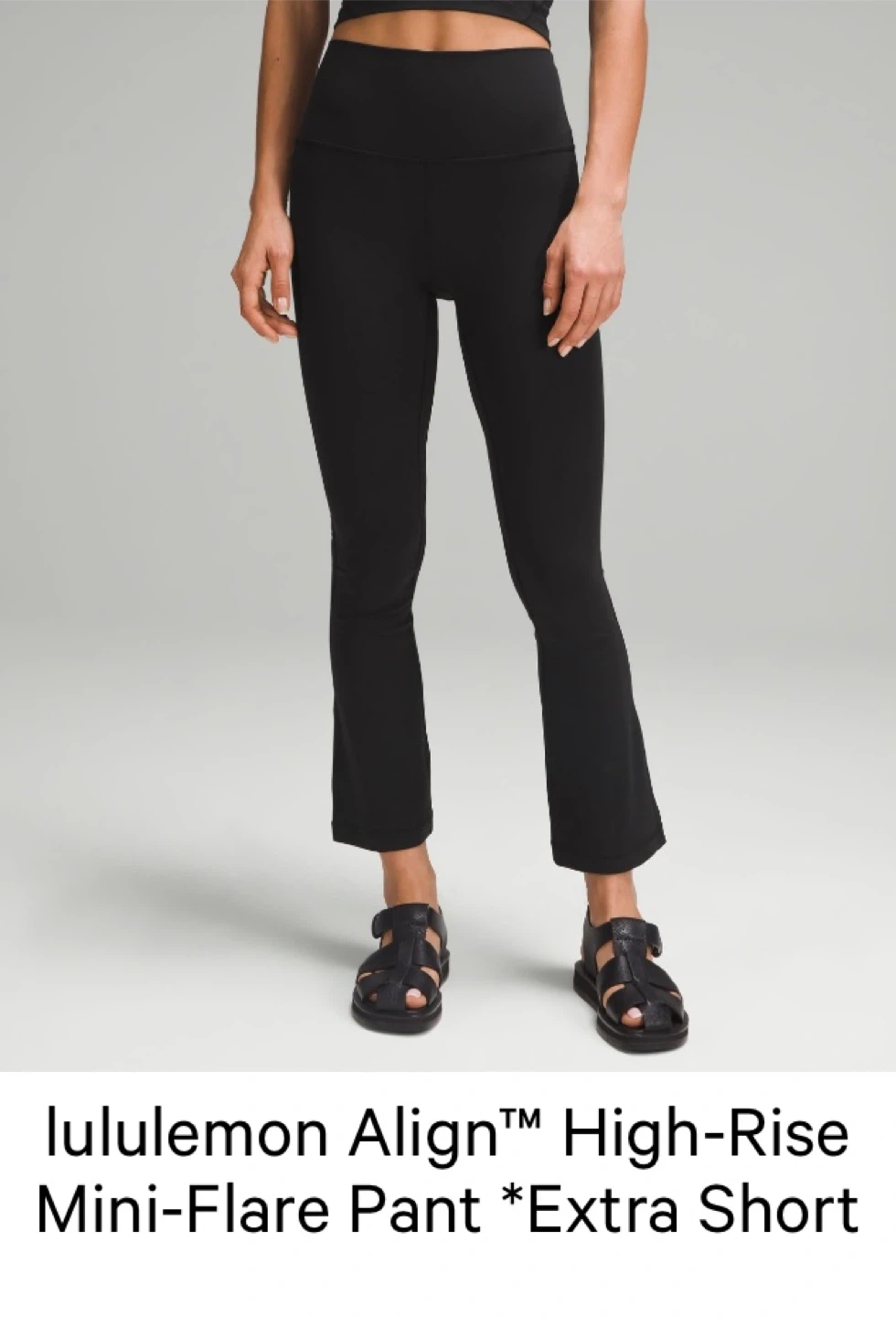 Lululemon Align High-Rise Mini-Flare Pants in black. These are the *Extra Short version. Perfect for yoga or everyday wear!