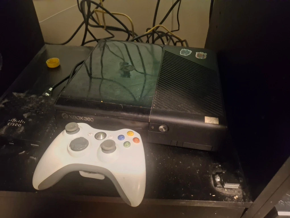 Selling an Xbox 360 console with a controller. It's a great way to enjoy classic games! The console shows some signs of use, but it's still functional and ready for a new player.
