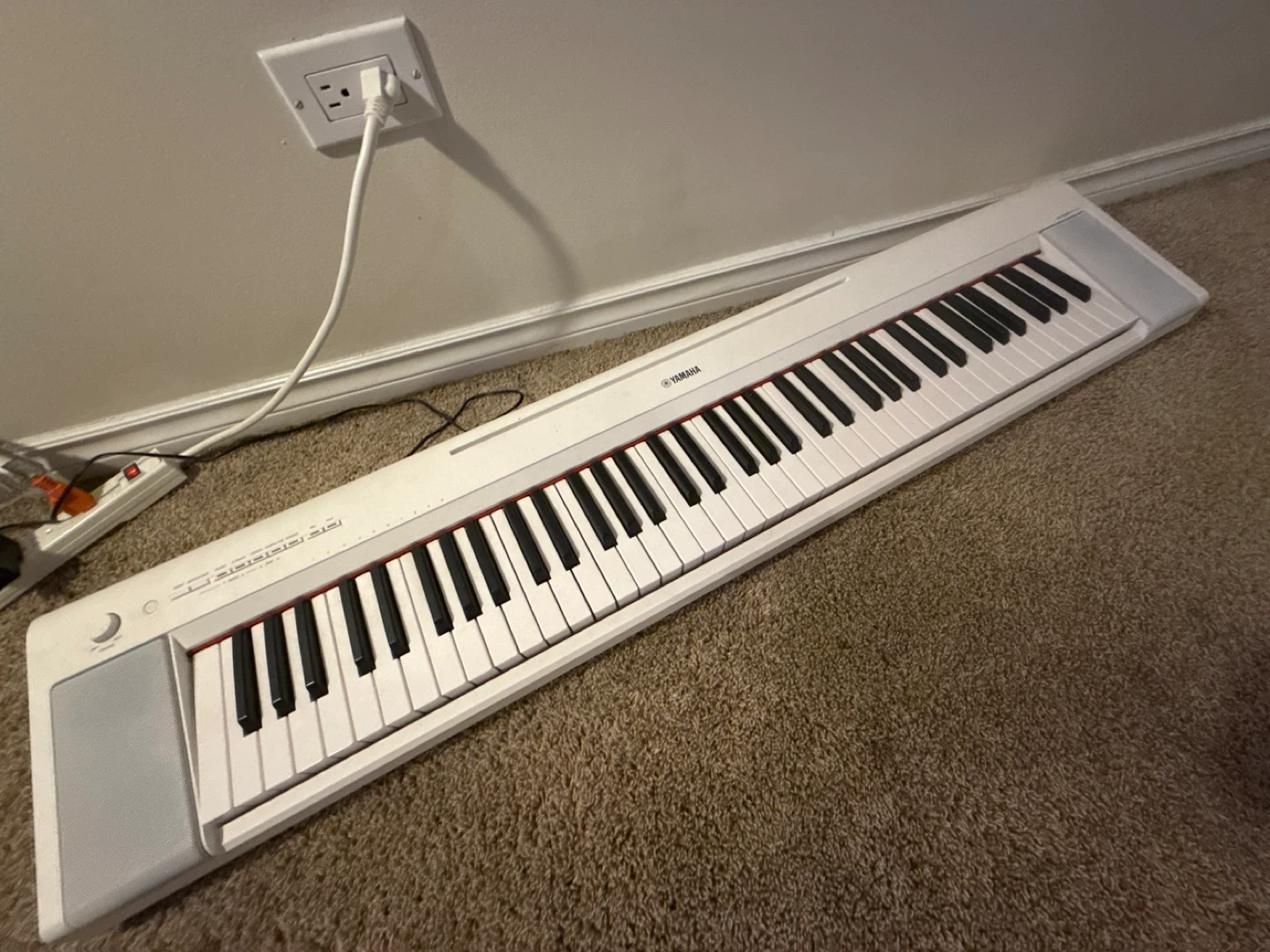 Selling a Yamaha digital piano! It's in great shape and would be perfect for someone looking to learn or practice. It's white and has a sleek design. I bought it from Amazon Canada for 599 CAD this year.