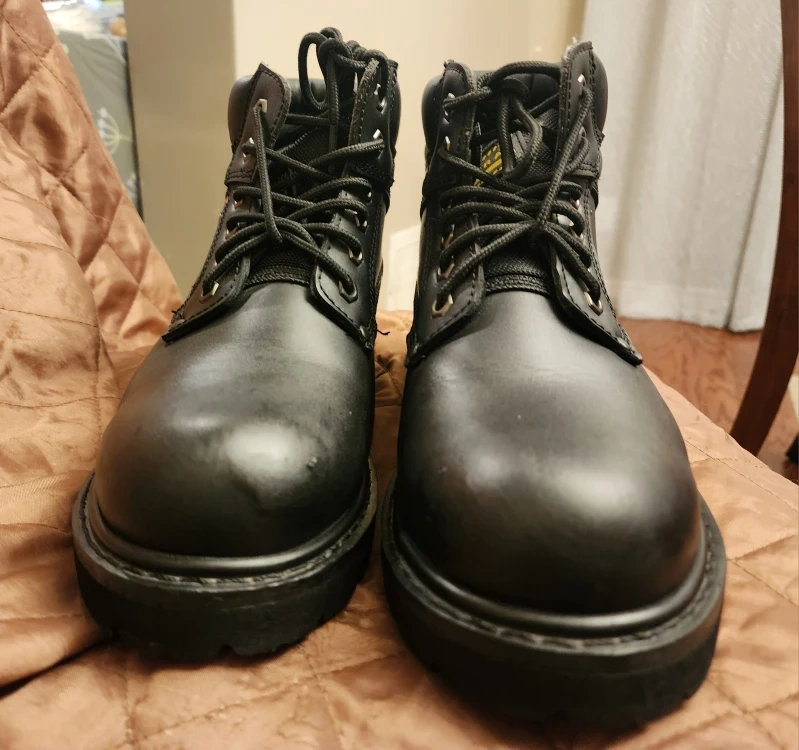 Selling a pair of black work boots. Used 4 to 5 times only. They look to be in great condition and ready for a new job site! The soles are oil resistant, so you can be sure you will have good traction. Please message me if you are interested!
