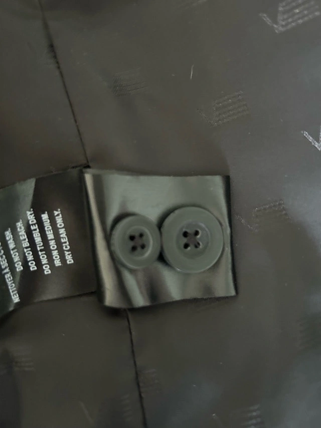 NWT Vincent D'Amérique Slim Fit Blazer. Brand new with tags (NWT) Vincent D'Amérique "Graduation Blazer" in a versatile charcoal gray. This is a modern, stylish jacket that works perfectly for formal events, business casual, or dressing up a pair of jeans. ✨ Key Features & Details: Brand: Vincent D'Amérique (Canadian brand from Quebec) Style: Graduation Blazer / Veston de Graduation Color: Charcoal Gray (a fine mini-dot pattern gives it a great texture) Size: Men's 34R (Regular) Fit: Modern/Slim Cut Retail Price on Tag: $178.00 Fabric & Care (From Inner Tag): Content: 56% Polyester, 44% Viscose (soft and comfortable fabric) Care: Dry Clean Only Extra Details: Single front button closure. Four buttons on the cuffs. Includes two spare buttons (one large, one small) sewn inside. Stylish metal "VE" (Vincent D'Amérique) logo pin on the lapel. Fully lined interior with branded logo fabric. Product Style Code: P55935V Please see all photos for details on condition, sizing, and style. Comes from a smoke-free home.