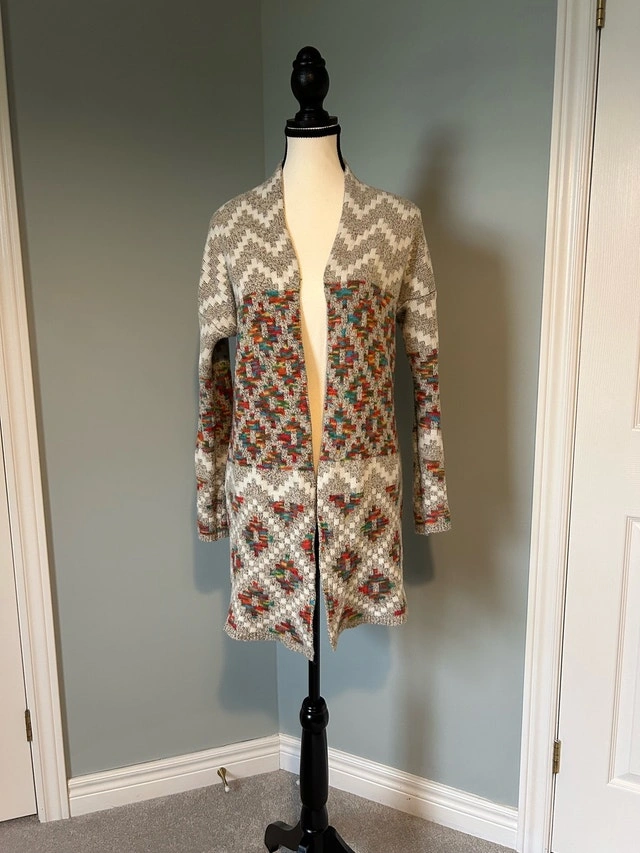 This is a Dreamers brand, long-sleeved cardigan with a beautiful and vibrant geometric pattern. It is a size S/M and in very good condition, ready to add a pop of colour to your wardrobe for those cooler days. Being gently worn, it’s just waiting for a new home! * Brand: Dreamers * Size: S/M * Sleeve Length: Long Sleeve