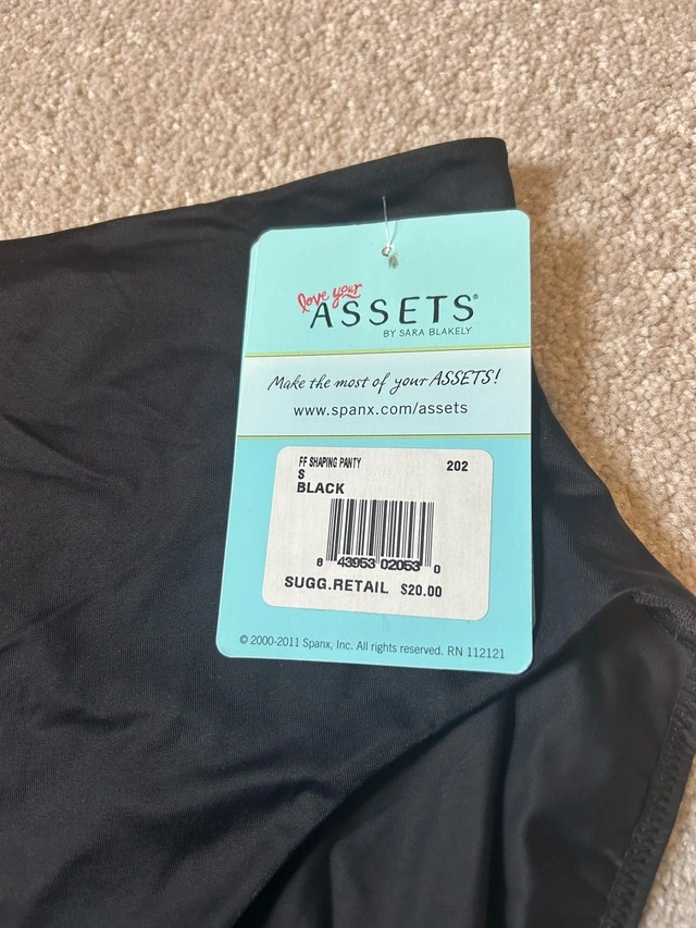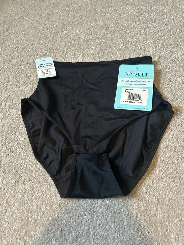 I'm selling a new with tags Assets by Sara Blakely shaping panty in size small with super slimming level and flattens tummy and firms bottom for a streamlined silhouette. Features: * Size: Small * Colour: Black * Slimming Level: Super * Flattens tummy
