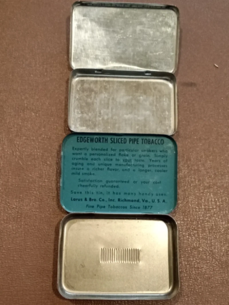 Selling a vintage Edgeworth sliced pipe tobacco tin. It's a cool piece of history! The tin shows some wear, but it's still a neat collectible.