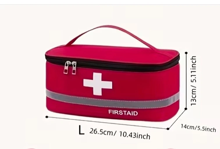 Keep your first aid supplies organized with this handy red bag! It's designed for portability and easy access, perfect for home, travel, or outdoor activities. The bag features a clear "FIRSTAID" label and a white cross symbol for quick identification. Durable Fabric, Large Capacity. Portable with Handle. Dimensions are approximately 10.43 inches (L) x 5.5 inches (W) x 5.11 inches (H) It's Brand New. Cash only please.