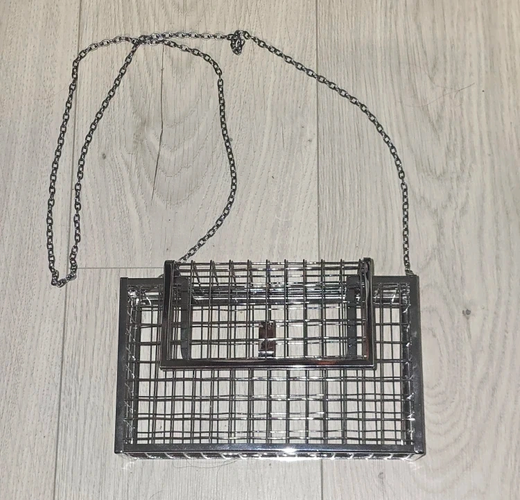 Selling a unique silver metal cage purse with a chain strap. It's completely new/never used and ready to go to a new home!
