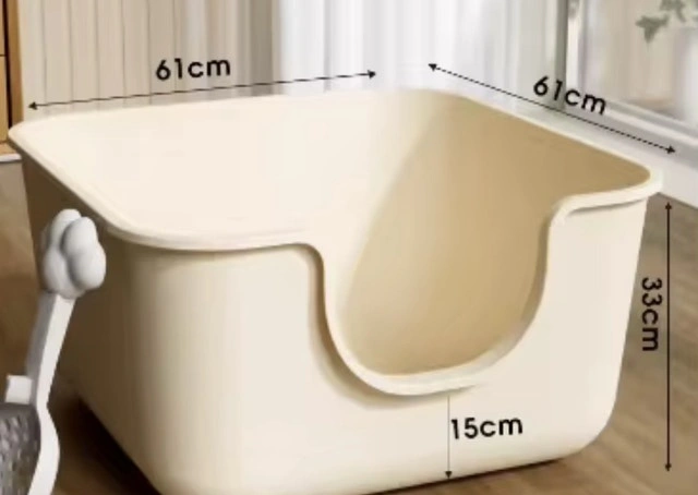 My big Ragdoll cat only uses this litter box out of all the boxes in the house. If you have a large cat, you already know how hard it is to find a proper spacious litter box. Most litter boxes from local pet stores are way too small. Size : 61*61*33 cm One pink and one beige available