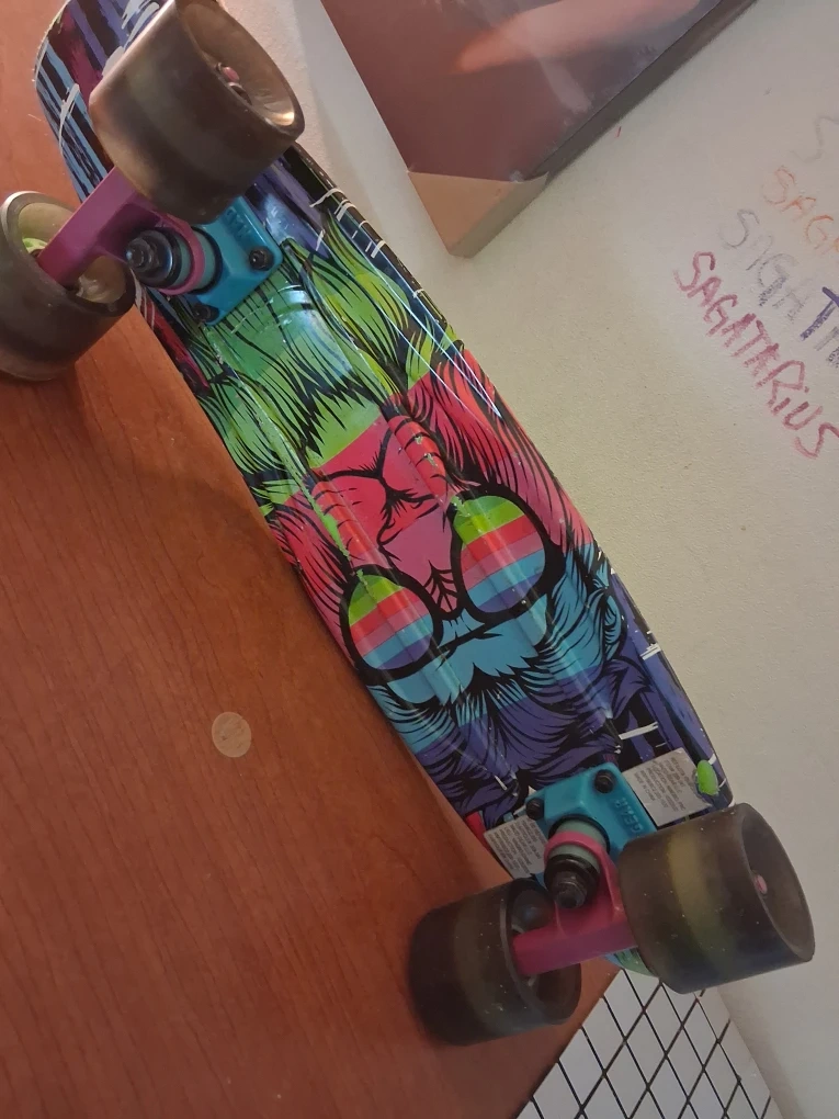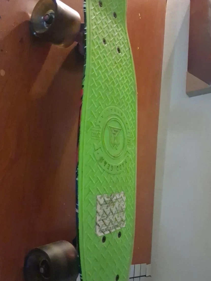 Selling a Madd Gear skateboard in green! It has a cool colourful design on the bottom. Great for cruising around the neighbourhood or practicing some tricks