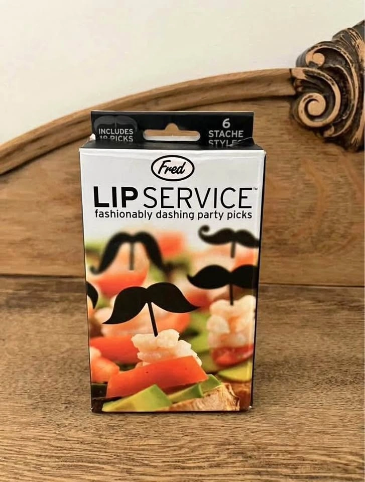 Buy & SellGenuine Fred Lip Service Mustache Toothpicks total of 15Genuine Fred Lip Service Mustache Toothpicks total of 15$10Genuine Fred Lip Service Mustache Toothpicks total of 15. Let me know if you're interested!WHERE TO MEETCheck LocationView MapSELLERverifiedJWExchange District600 reviews0 chats·0 favorites·3 views