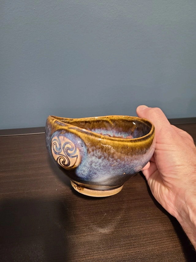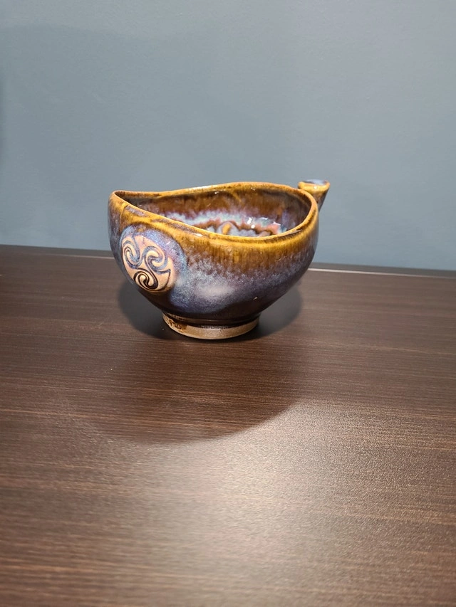 A beautiful pottery bowl that has many uses. Use it to hold your jewelry, keys, or just admire it around your home. Bowl is 3.25 inches tall, 6 inches across including handle Only $5! Please see my other ads for other items. (**If you are viewing this ad, then this item is still available**)