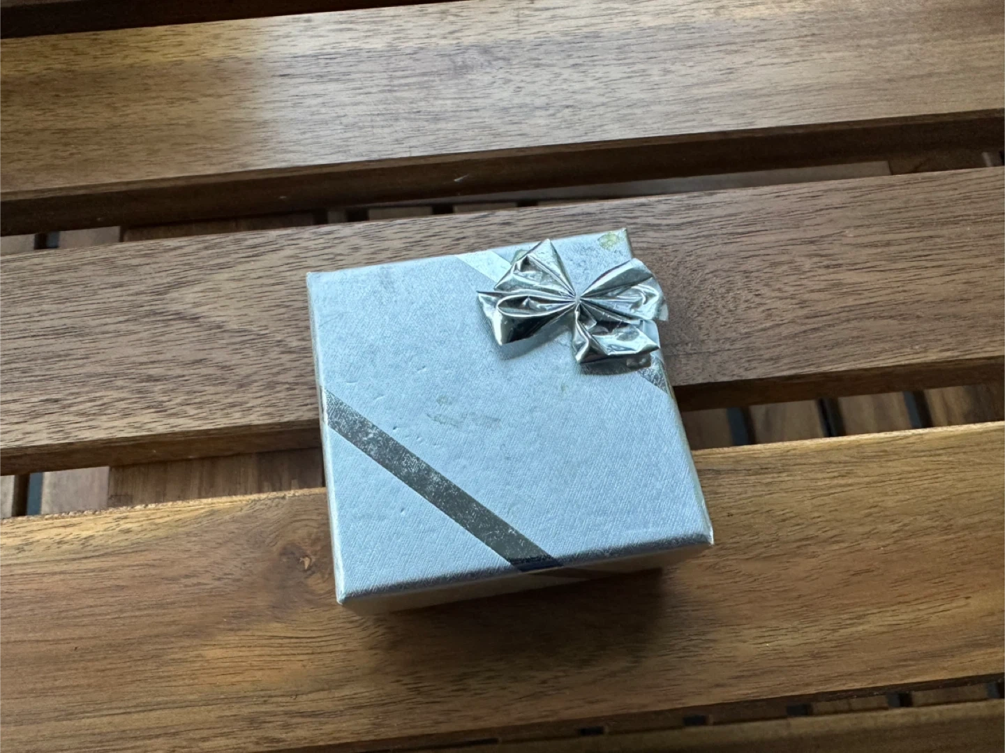 This is a Kultajousi jewellery set that includes a ring and a pair of earrings. The set comes in its original box. The ring has the word "TBOPM" engraved on it.