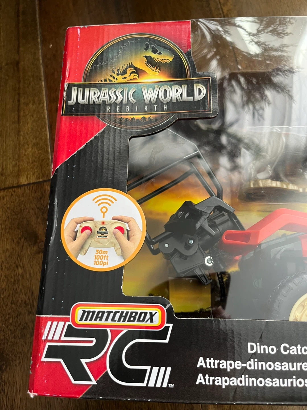 Selling a brand new in box Jurassic World Matchbox Dino Catcher RC. This remote control vehicle requires 5 AA batteries and the remote requires 2 AAA batteries (not included). It has two speeds. Recommended for ages 6+
