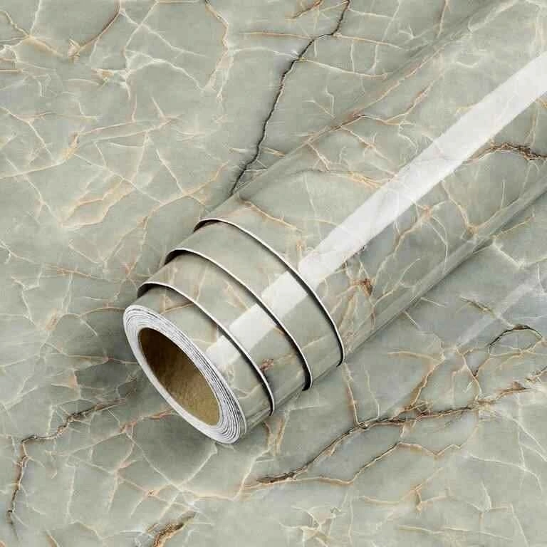 60CM x 4M Marble Grey Green Contact Paper Decorative Peel and Stick Wallpaper Roll Removable Wallpaper Waterproof Marble Countertop Contact Paper for Kitchen Island Cabinets Backslash Desk