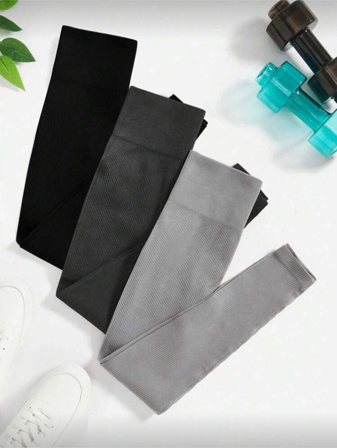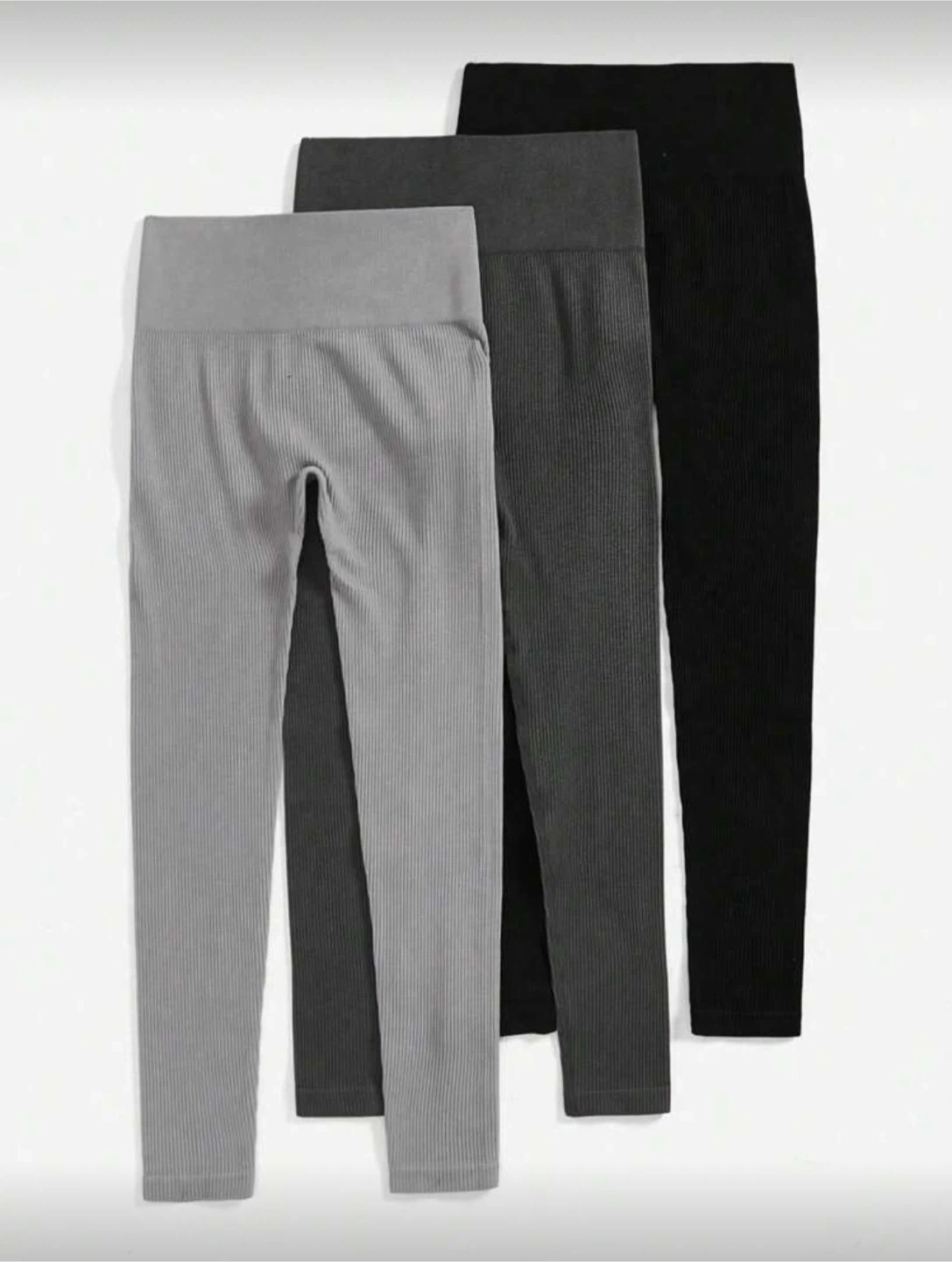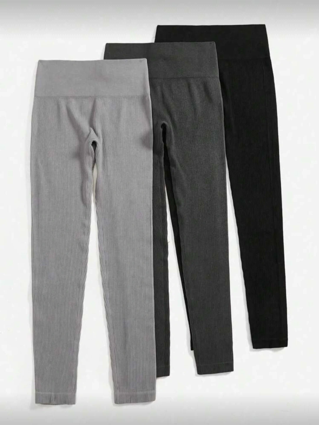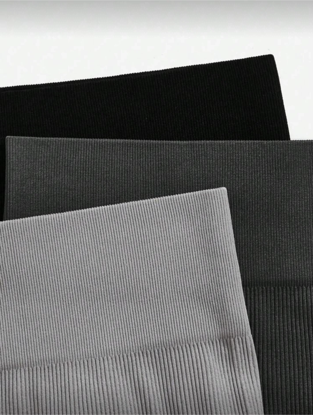 Ribbed Seamless Leggings - Grey, Dark Grey, Black