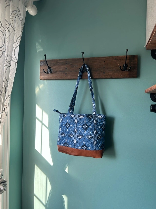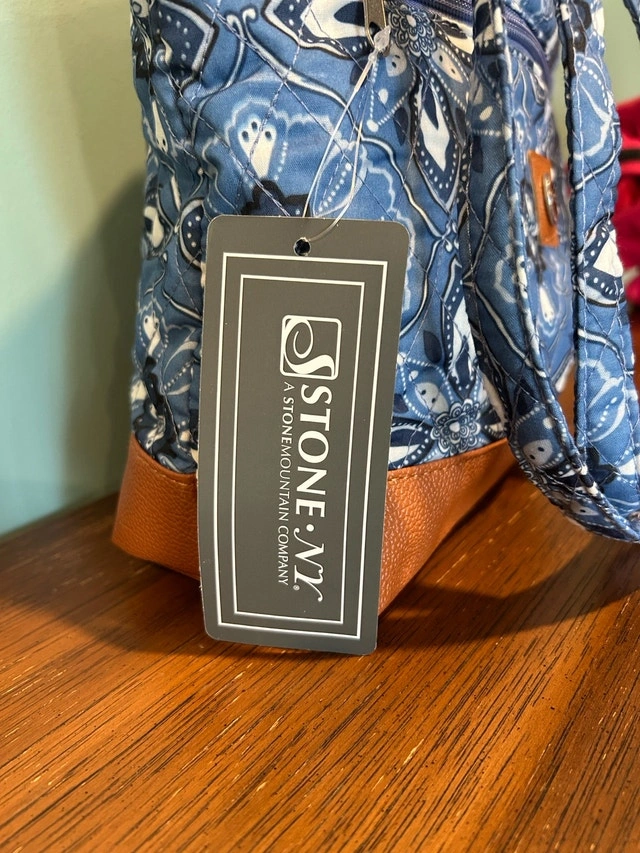 Handle drop: 12.5” Bag Width: 12” Bag Height: 9.5” Bag depth: 3.5” Inner zipped pocket/outer zipped pocket Very lightweight Polyester lined and can be used as a lunch-bag. Easy to clean. Faux leather accents Elegant tote with floral design. Front zipper pocket. Durable handles.