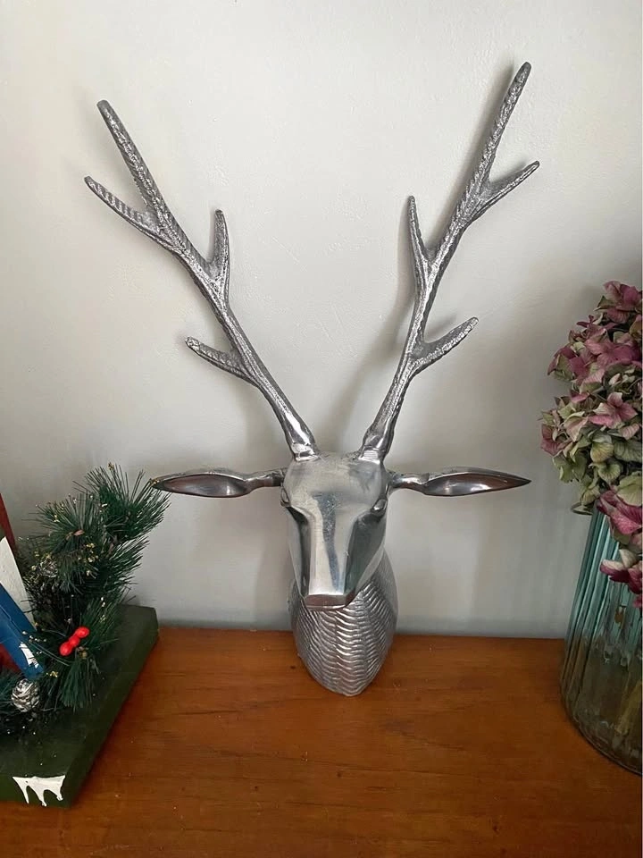 Deer/Stag Head Aluminum Wall Mounted is perfect for adding a modern yet rustic touch to any space. Has a wall hanger on the back.