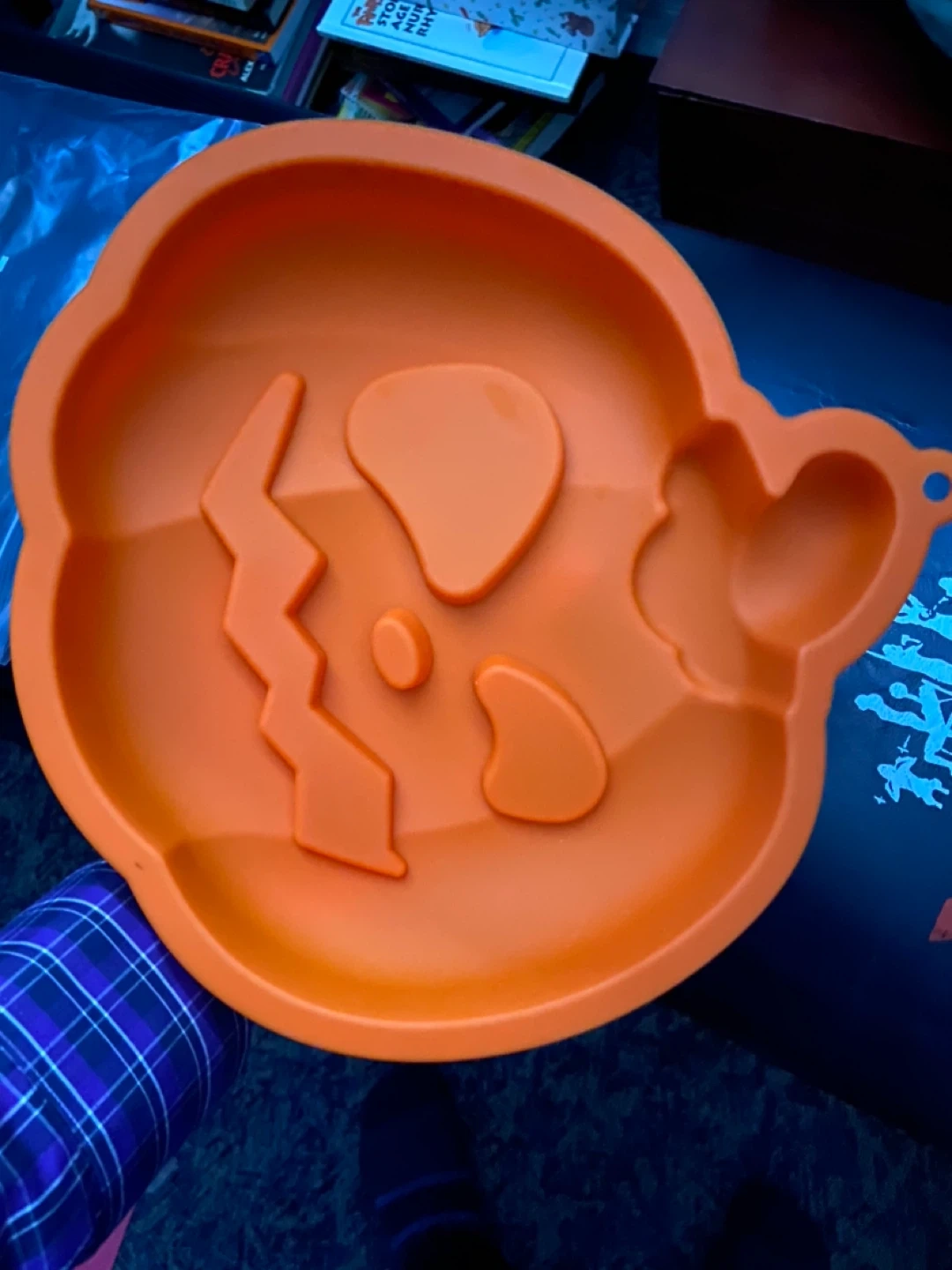 Selling two Halloween-themed silicone molds! One is a skull mold that makes six skulls, and the other is an orange pumpkin jack o lantern mold. Perfect for baking or making spooky treats!
