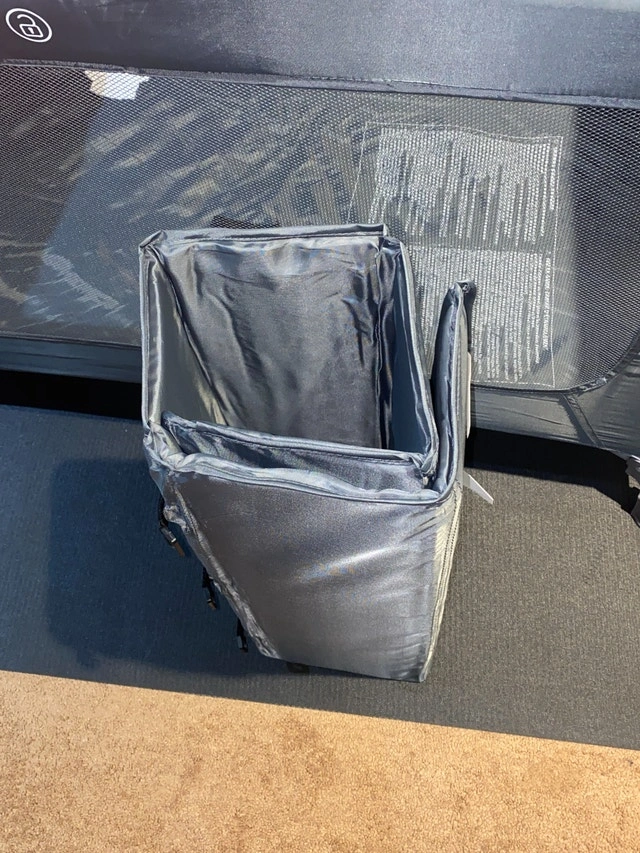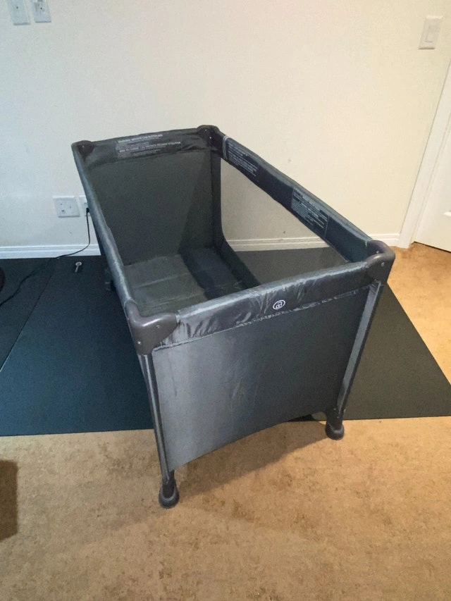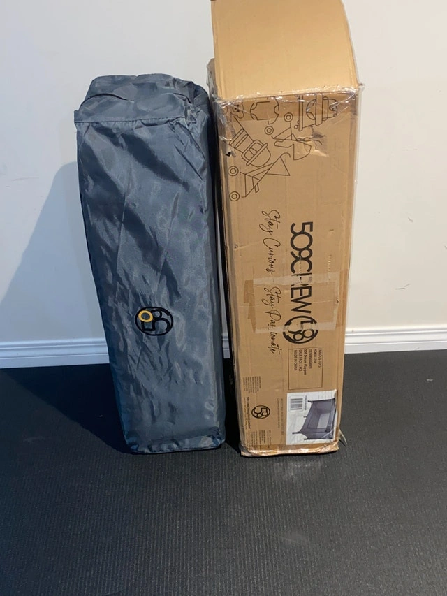 Airdrie, Morningside pickup. Product is as described or money back. New and unused. "509 Crew Travel Bed" pack n play baby play yard / playpen. Sets up easily. Instructions included. A little heavy due to the solid undermat for the floor of the bed. Dimensions: 49"L 26"W 30"T Regular Amazon price: $140
