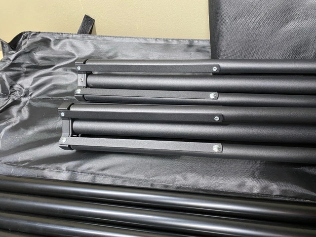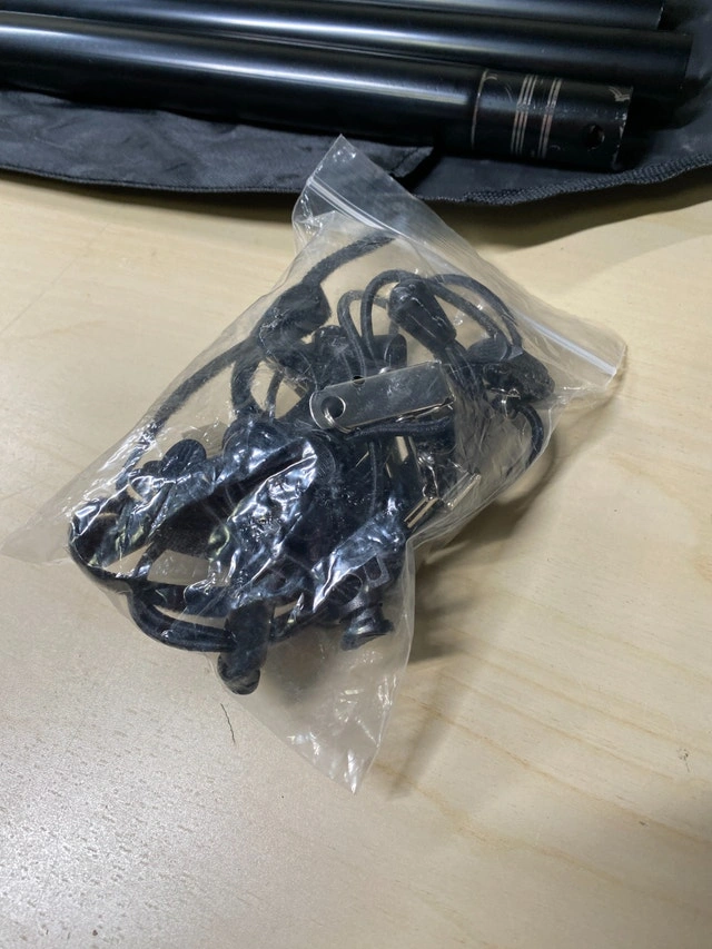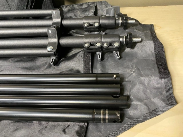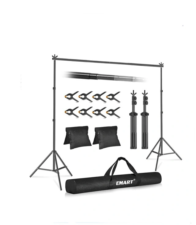 Airdrie, Morningside pickup. Product is as described or money back. New and unused. "Emart" adjustable backdrop stand. 7 feet tall x 10 feet wide. Adjustable height (2.6ft/0.8m–7.0ft/2.1m) 8x clamps 2x (unfilled) sandbags 2x tripods 4x cross bars 1x carry bag Regular Amazon price: $75