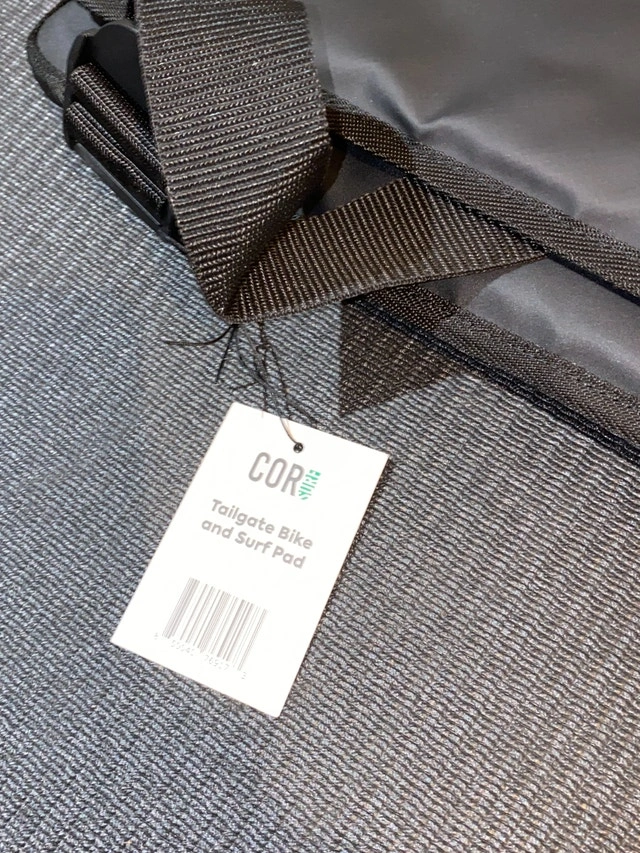 New and unused, tag still attached. "COR Surf" tailgate bike pad. 59" long. Large flap for backup camera. 6 bike straps. Regular Amazon price: $100. Airdrie, Morningside pickup. Product is as described or money back.