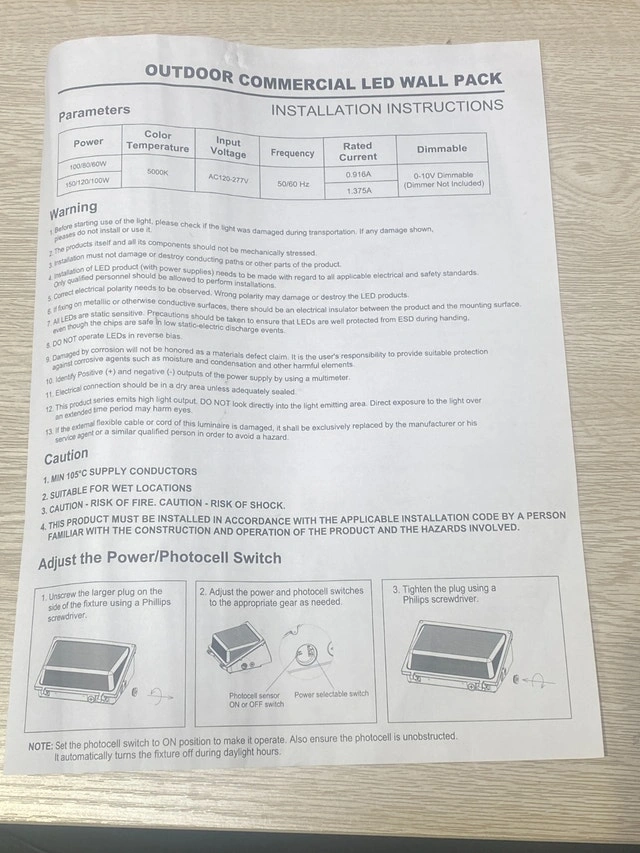 New and unused "kadison" 150W LED Wall Pack outdoor lighting in an open box. It has 3 light output options: 150W, 120W and 100W, producing up to 19,500 lumens. Dusk-to-dawn photocell automatically turns this exterior LED light on when it’s dark outside and off when the sun comes up. If you prefer to manually control the light, just set the photocell switch to OFF position. Regular Amazon price $100. Product is as described or money back. Airdrie, Morningside pickup available.