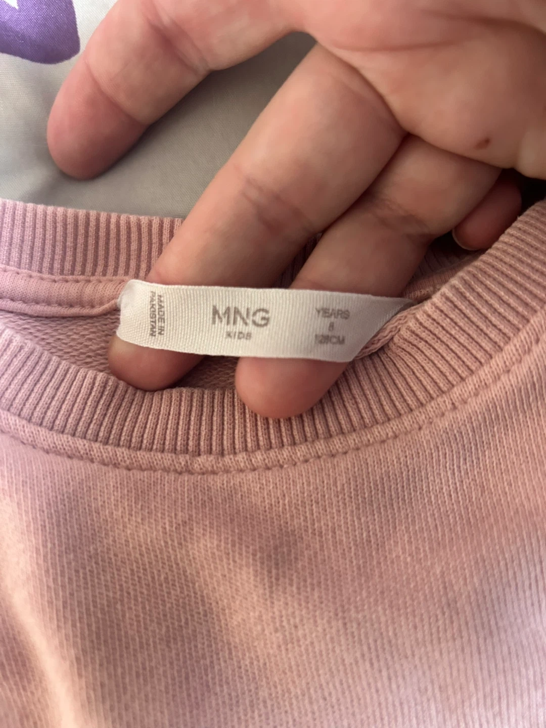 I'm selling a cute MNG Kids sweatshirt in a lovely pink colour! It features an adorable "Doggie of the Year" graphic, making it a fun and stylish choice for your little one. The size is 8. Small marker stain on it.