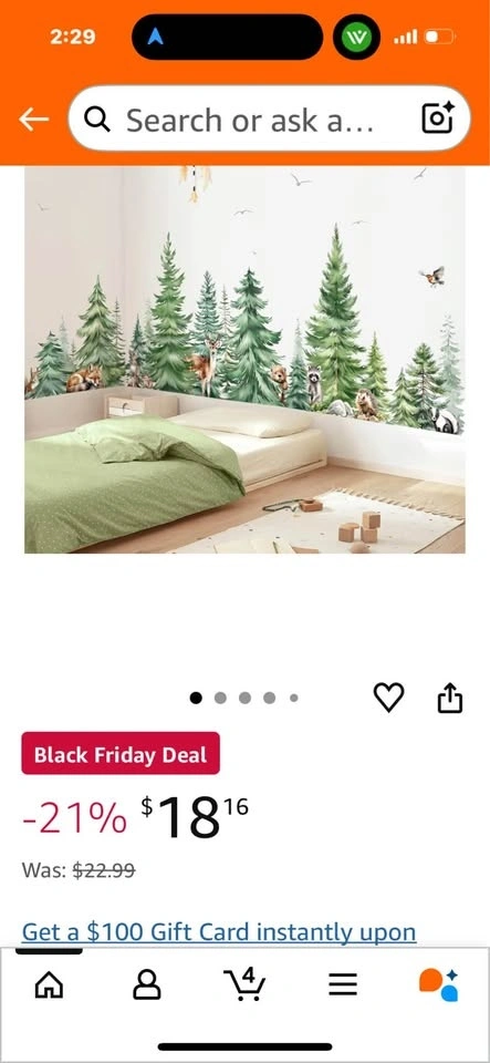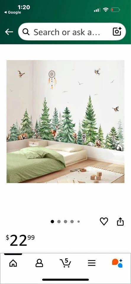BRAND NEW Large Watercolor Pine Tree Animals Wall Stickers