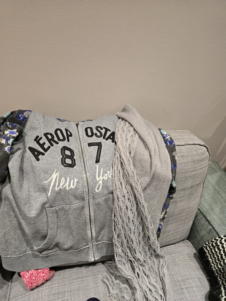 FREE a grey Aeropostale zip-up hoodie. It features 'Aeropostale 87 New York' on the front. It's in not new but like good condition.