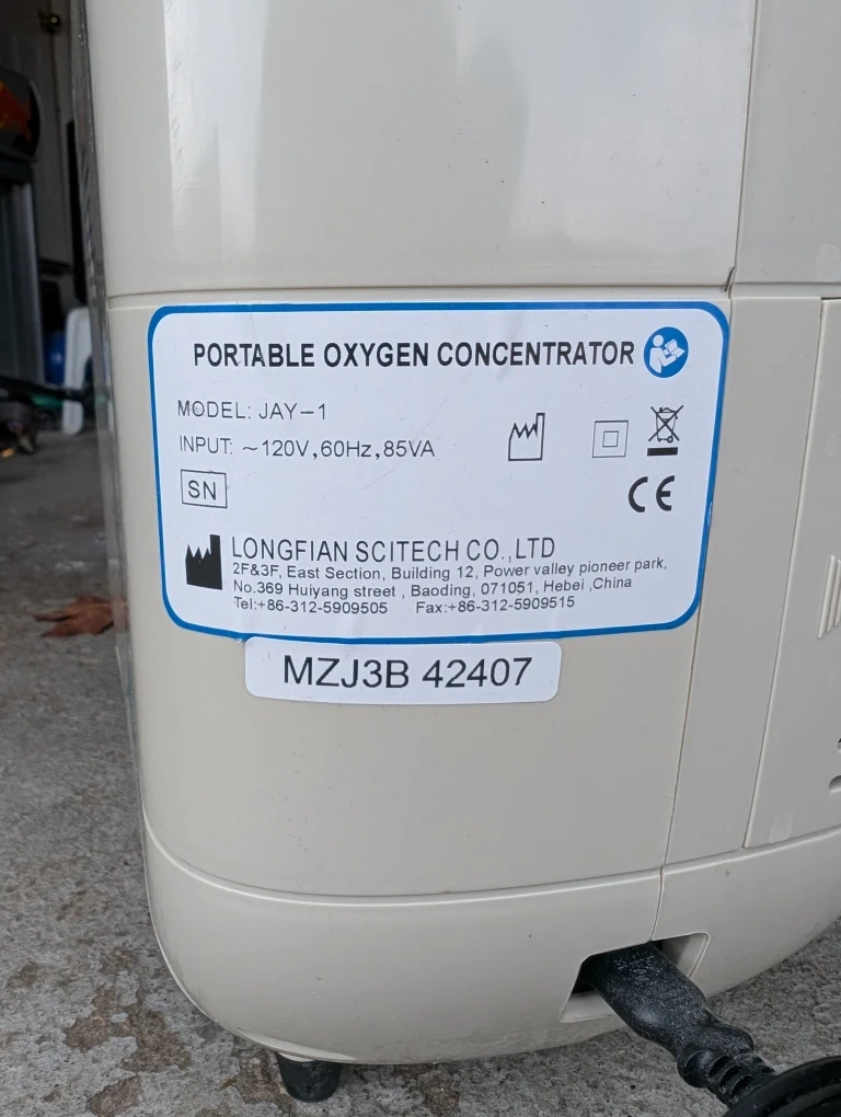 Selling a portable oxygen concentrator, model JAY-1. It's in good condition and ready to use. Perfect for anyone needing supplemental oxygen on the go