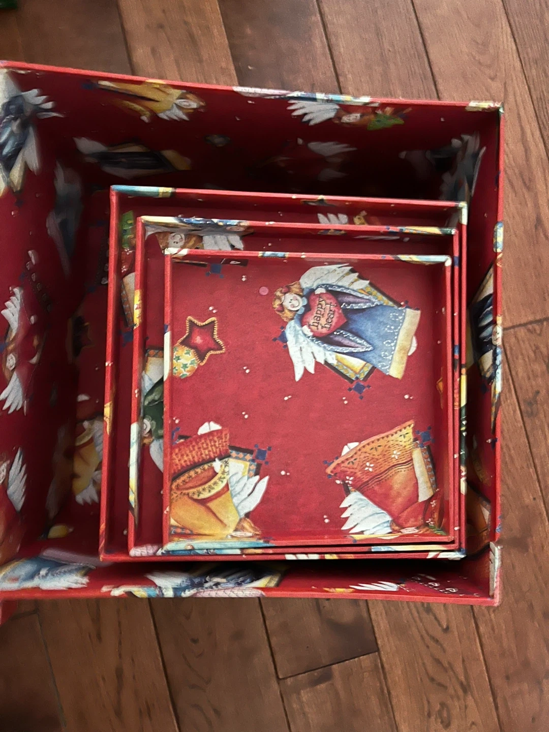 Offering a set of nesting boxes! They come in two different colours: red and green. These are great for storage or decoration