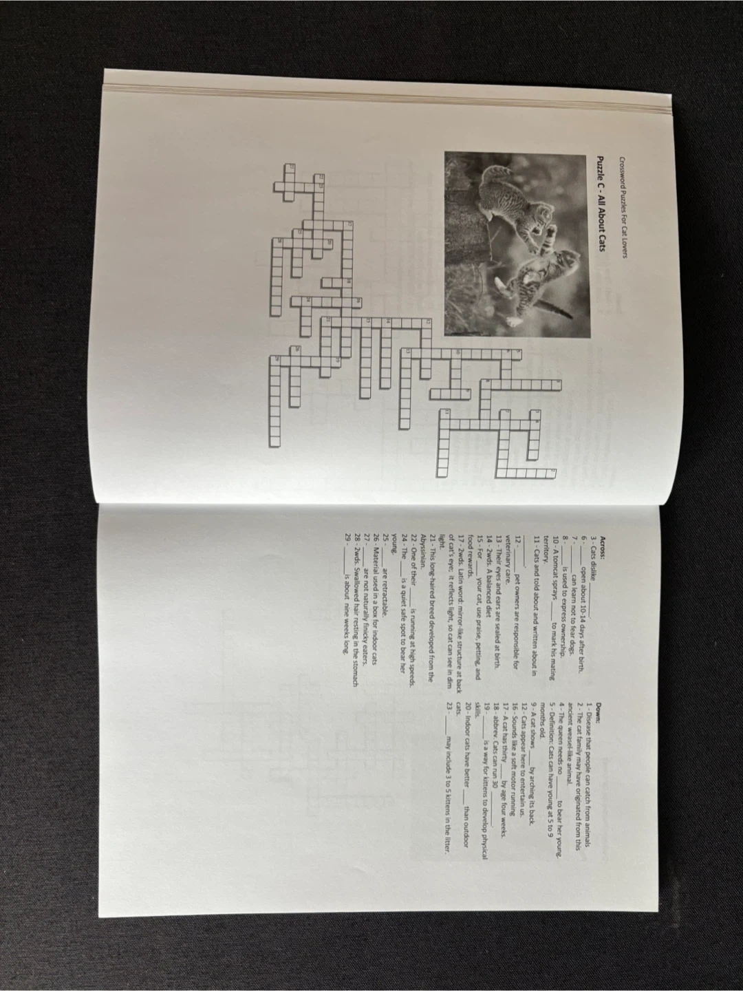 Selling a crossword puzzle book for cat and crossword puzzle lovers! It's a fun way to learn new facts about cats while enjoying an entire puzzle book with fascinating clues. Never used, with full solutions. Perfect for enjoying the holidays indoors! 🎄