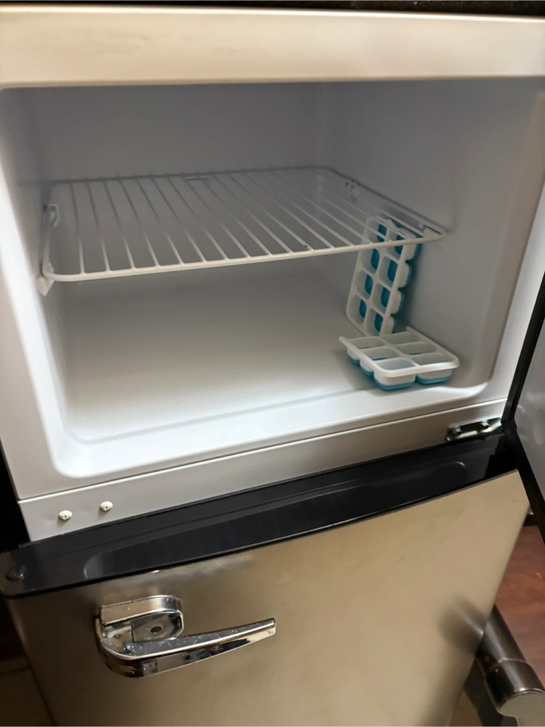 It has a thermostat and is silver in color is not cooling need fixing but in great condition