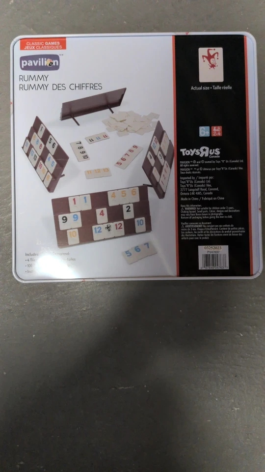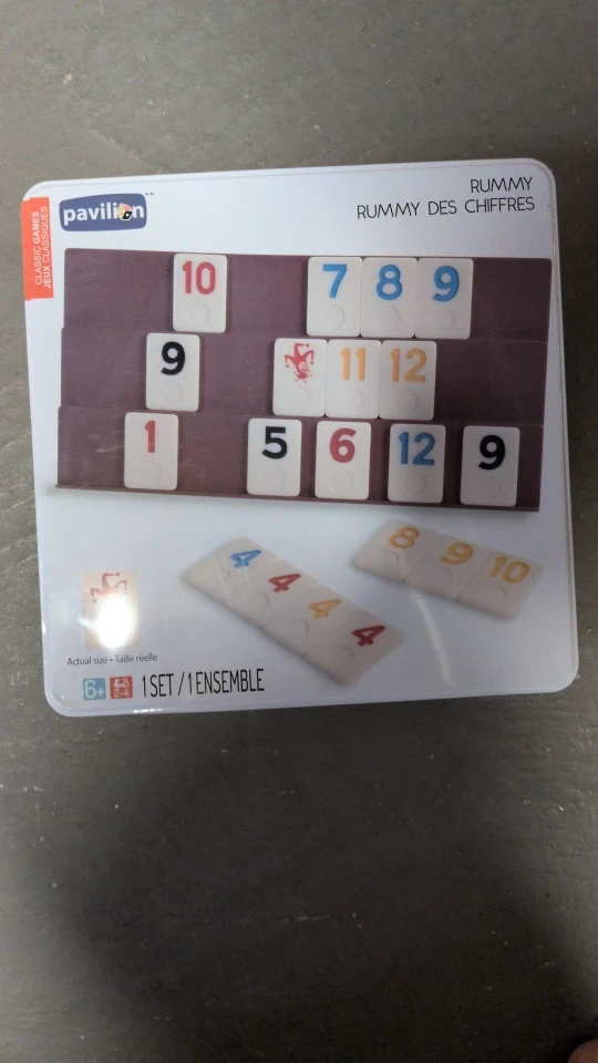 Buy & SellPavilion Rummy des Chiffres GamePavilion Rummy des Chiffres Game$12Selling a Pavilion Rummy des Chiffres game Includes: - 4 Tiles Racks - 106 Tiles - InstructionsConditionLike newWHERE TO MEETCheck LocationView MapSELLERverifiedRuchaErin Mills16811 reviews0 chats·0 favorites·4 views