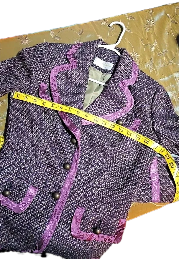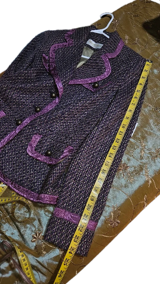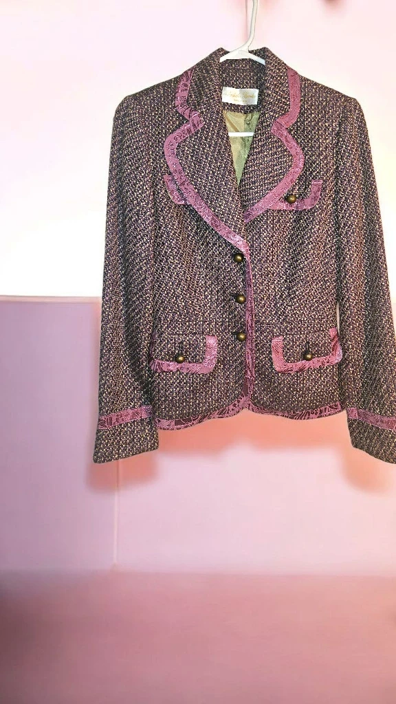 A stylish Escada Margaretha Ley blazer in size 36! This blazer features a unique tweed pattern with decorative trim. Perfect for adding a touch of sophistication to any outfit