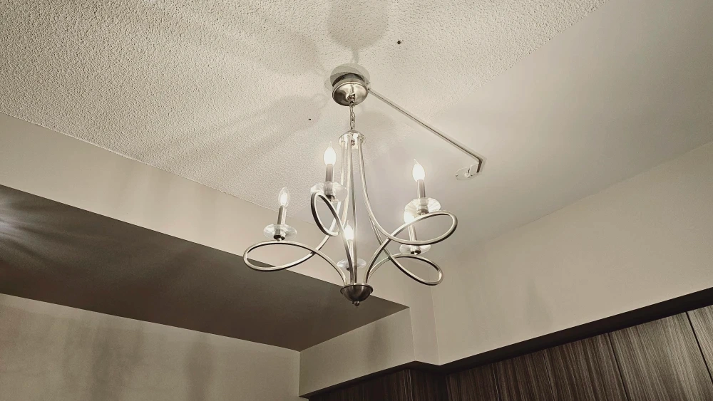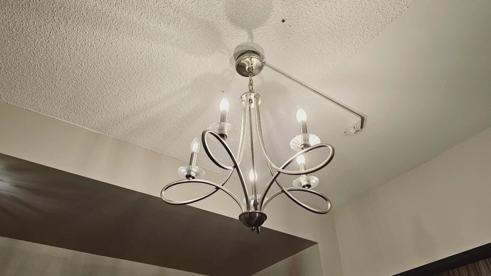 Beautiful silver chandelier with five lights, bought from Home Depot.