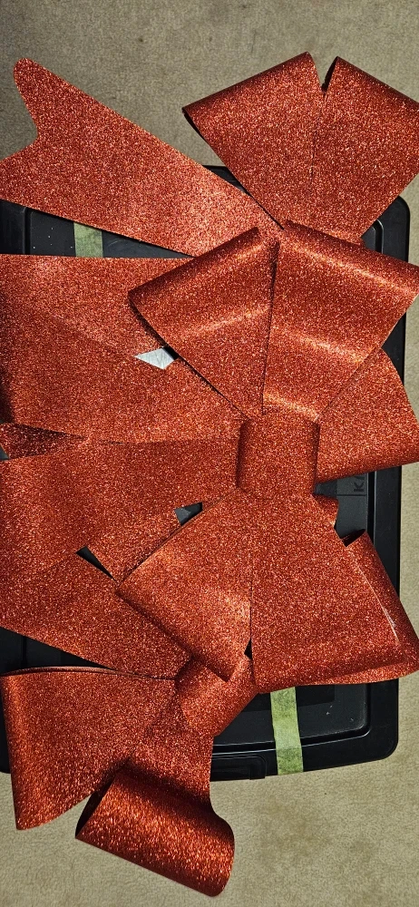 Gifting a set of 3 red glitter Christmas bows! They're perfect for adding a festive touch to your holiday decorations! Pick up only At Copersmith Plaza in Richmond BC.