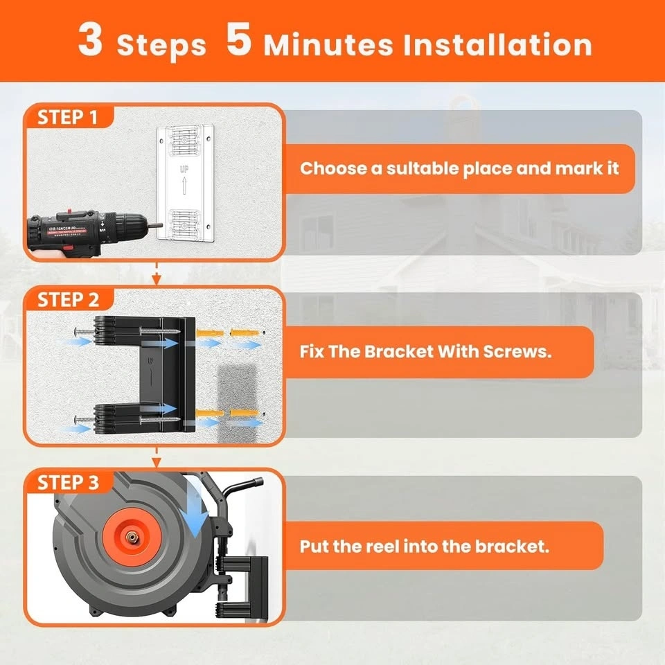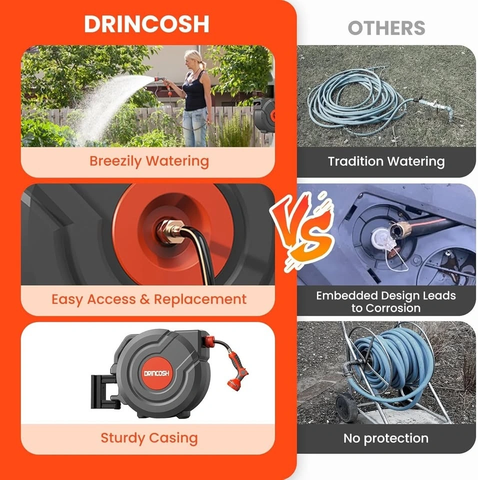180° Swivel Bracket – Easily rotates for flexible garden reach without moving the reel.