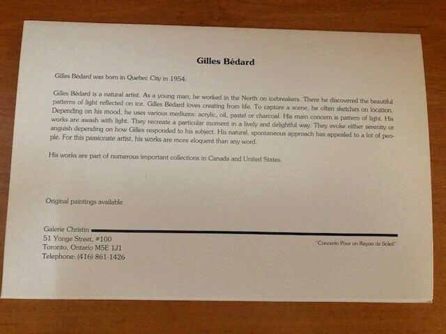 Greeting cards by Quebec artist Gilles Bedard. They are blank inside and come with envelopes and depict a Quebec winter scene, measuring 6 x 9 inches. 30 cards for $15. From a pet and smoke free home. Pickup is in the St. Lawrence market area downtown Toronto. Check out my other cards in my listings. Cash only.