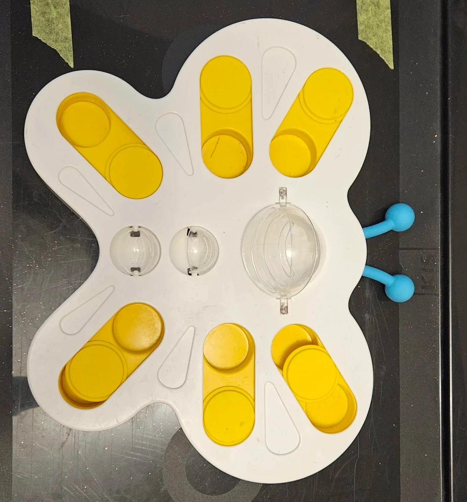This is an interactive butterfly-shaped puzzle cat toy. It's designed to keep your furry friend entertained and mentally stimulated. Perfect for cats who love a good challenge! My cat graduated from this one! Pick up only Richmond BC at Coppersmith Plaza.