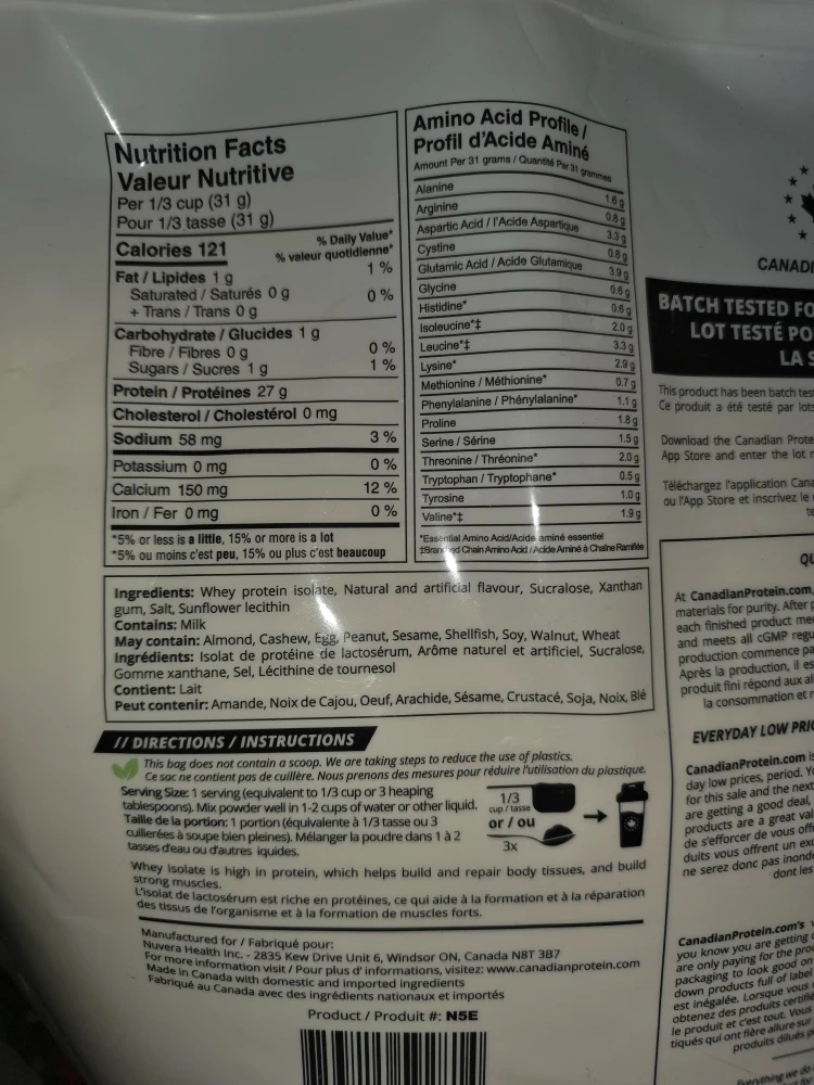 Selling a 2kg bag of Canadian Protein Whey Protein Isolate in Vanilla flavour. It's a drink mix that's great for adding to your workout routine. Best before September 2027! Retail $129.99 on black Friday sale for $75. Brand new never opened bought too many bags
