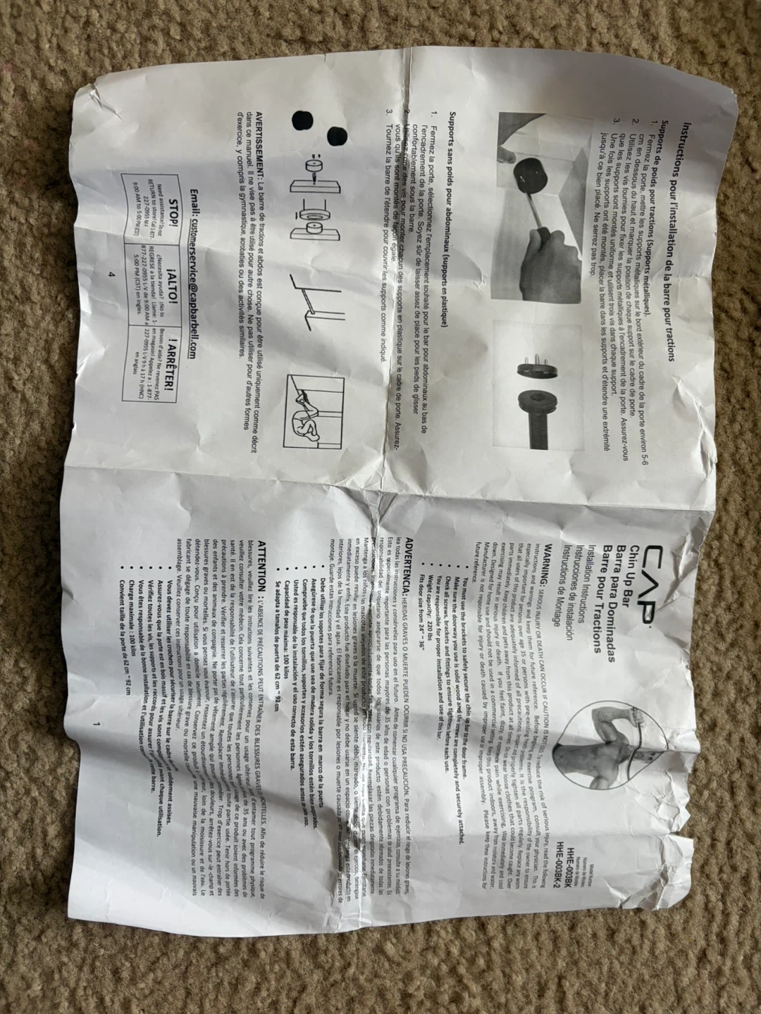 Selling a brand new CAP Barbell Chin-Up Bar, still in its original packaging! It adjusts to doors 24.5 in to 36 in and has foam padding for comfort. It's designed to strengthen your upper body and securely attaches to most door frames. Included are the chin-up bar, mounting hardware, and instructions
