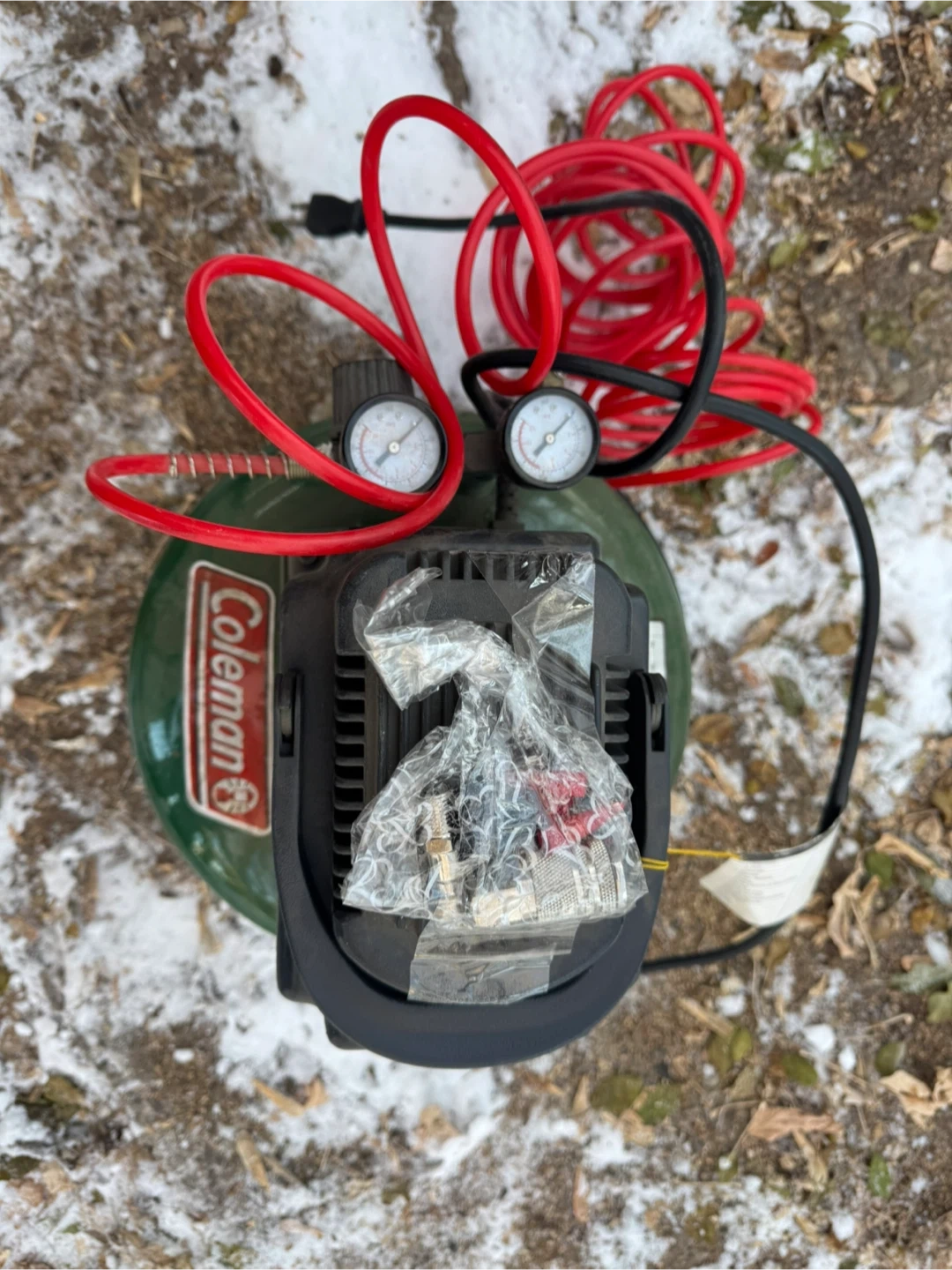 Selling a Coleman air compressor in excellent condition! It looks like new and is ready to go. It comes with a variety of attachments.