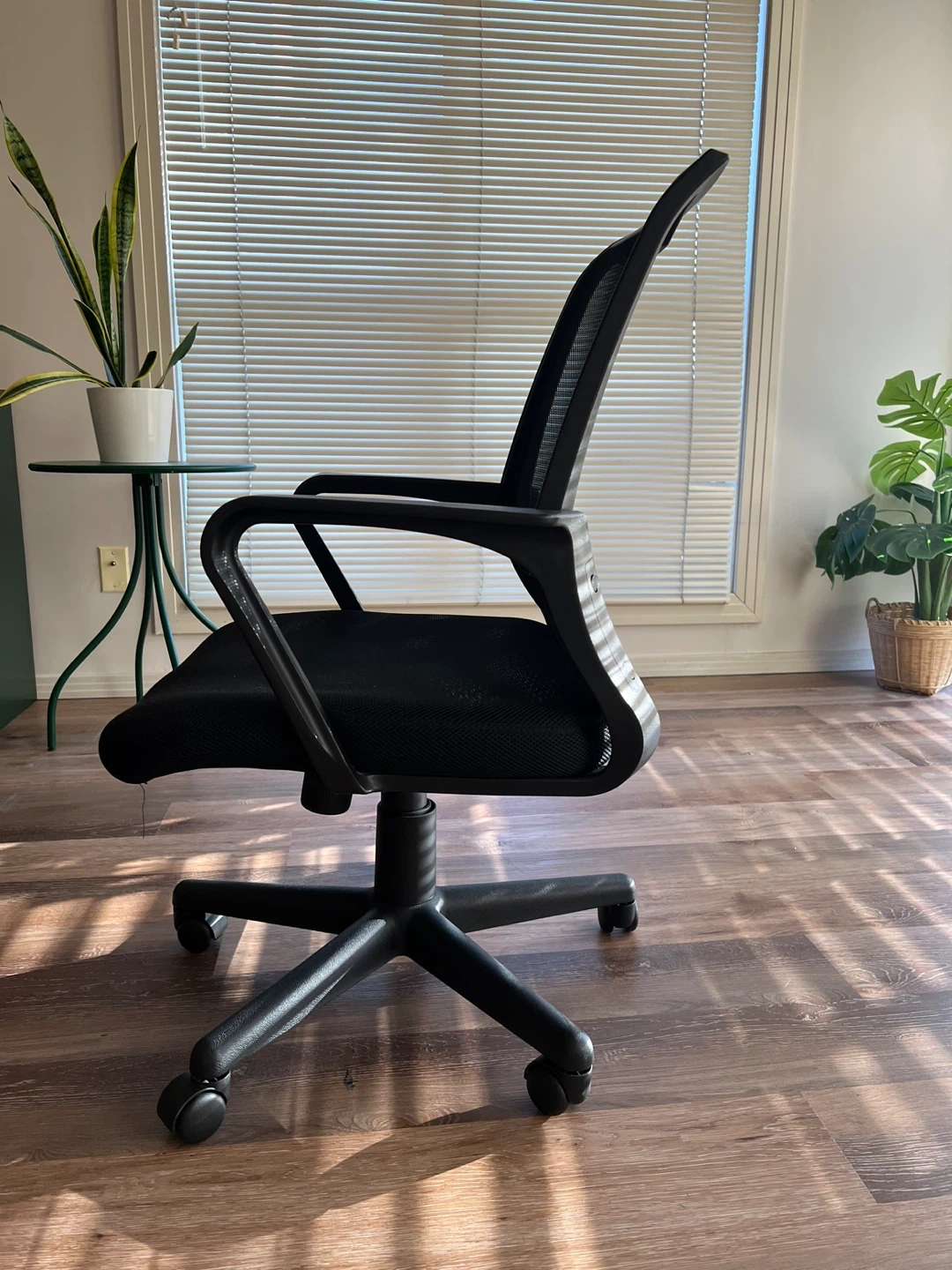 Selling a comfortable black mesh ergonomic office chair. It's in great condition and perfect for working from home or studying. The mesh back provides good support and breathability, and the chair is easy to adjust. Clean and well kept. Coming from pet free smoke free home.
