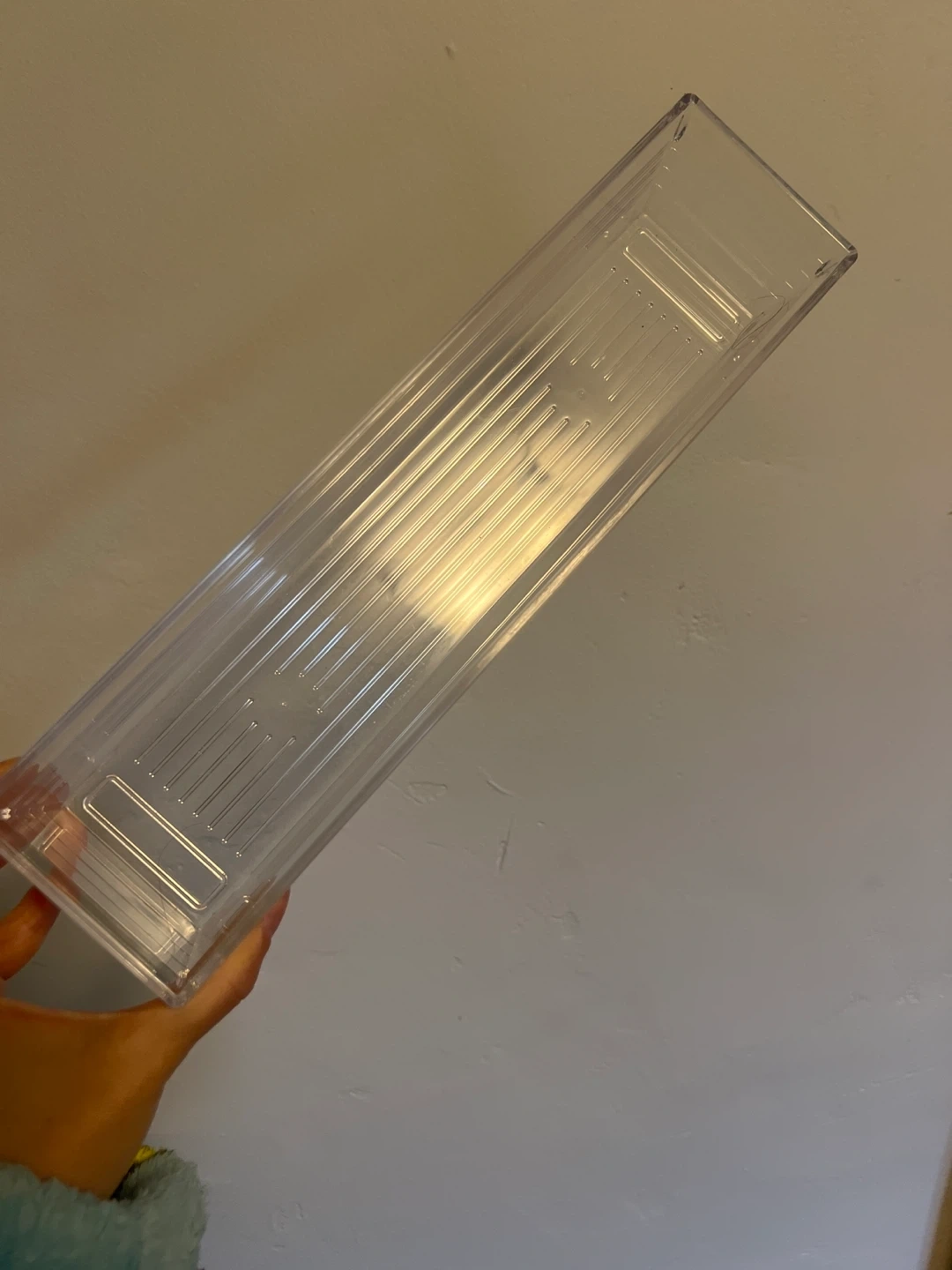 Here's a clear plastic drawer organizer. It's in great shape and ready to help you tidy up your space! Perfect for organizing drawers in your kitchen, bathroom, or office