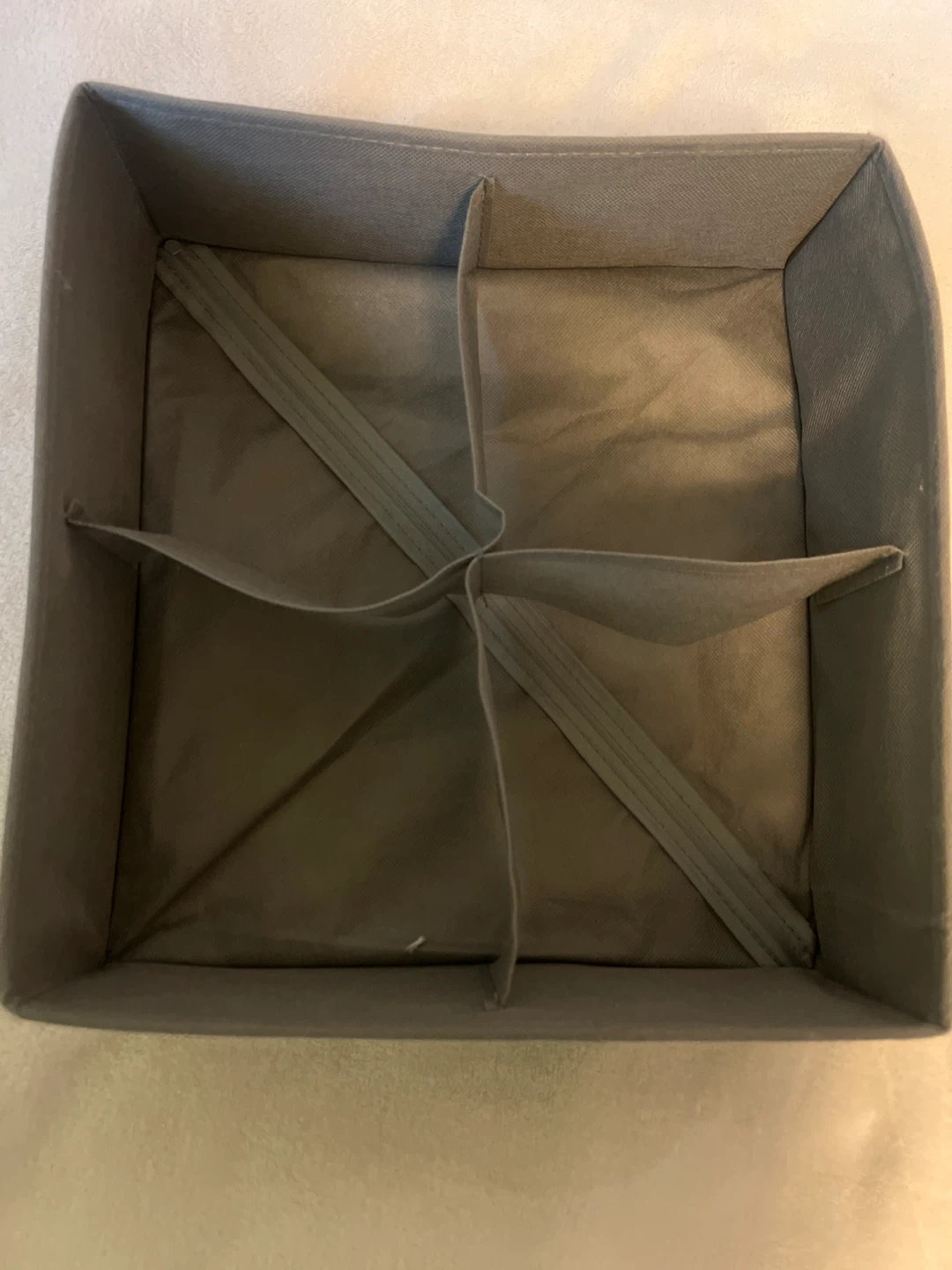 Selling a grey closet organizer! It has four compartments and a zipper on the bottom. Perfect for keeping your closet tidy and organized!