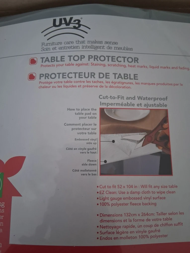- Table Top Protector Cut to fit 52 x 104 in (132 x 264 cm)